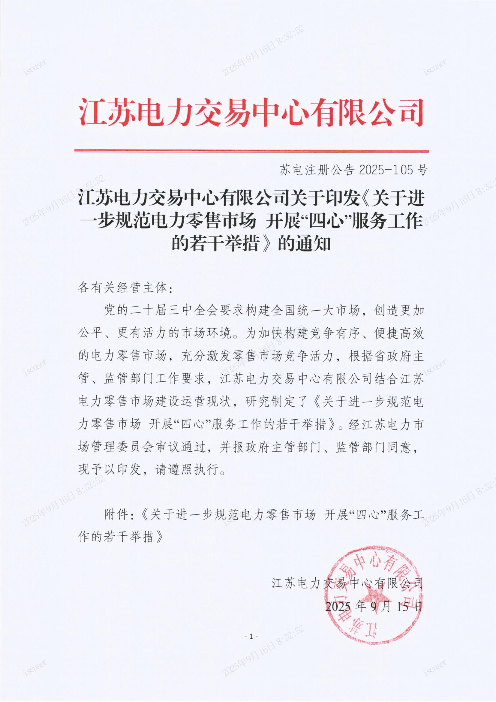 北极星电力市场网获悉,9月15日,江苏电力交易中心印发《关于进一步规范电力零售市场开展“四心”服务工作的若干举措》的通知,其中提到,完善零售套餐价格传导机制,固定价格套餐电量比例不宜高于50%,比例分成、浮动价格套餐中,鼓励与现货价格传导的电量比例为5%~10%。设计并推出与中长期、现货电力市场价格相衔接的分时固定价格、分时浮动价格等两类标准化零售套餐。分时固定价格套餐支持按24个时段分别约定价格,分时浮动价格套餐按批发市场年度长协交易各时段均价、月度竞价各时段价格、月内能量块各时段价格、实时市场用户现货统一结算点各时段算术均价等进行浮动。