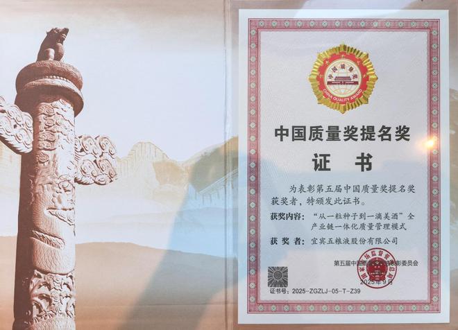 9月16日,中国质量(南京)大会在南京开幕。大会揭晓并颁发了第五届中国质量奖及提名奖五粮液凭借“‘从一粒种子到一滴美酒’全产业链一体化质量管理模式”荣获第五届中国质量奖提名奖,成为行业唯一斩获此项殊荣的酒企。
